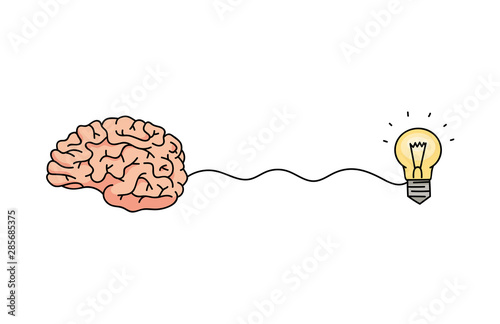 Brain Creating An Idea Cartoon Hand Drawn Icon Connected To Light Bulb Symbol With Wavy Line Brain Wall Mural Bra Sabelskaya